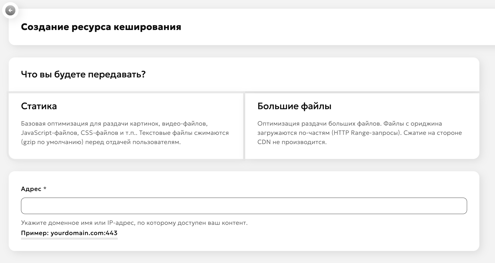 Помните, что каждое применение изменений конфигурации на сети CDN занимает до 15 минут. Во время применения изменений ресурс продолжает работать с предыдущей конфигурацией до полного обновления.