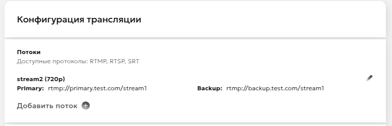 Резервный URL рекомендуется использовать при наличии достаточной пропускной способности канала - это обеспечит дополнительную надежность трансляции.