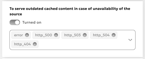 When the "Serve Stale Content on Origin Unavailability" option is enabled, the system will return cached content in the following cases: