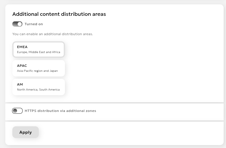 Keep in mind that each configuration change takes up to 15 minutes to apply across the CDN network. During this time, the resource continues to operate with the previous configuration until the update is complete.