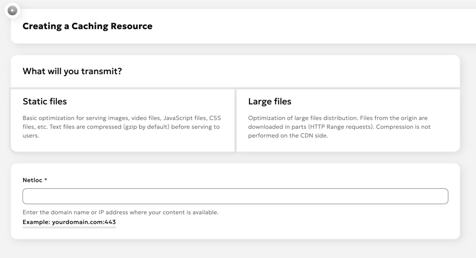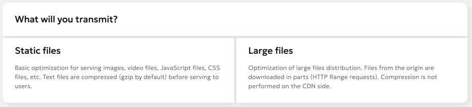 When creating a resource, you need to choose one of the following content delivery optimization options: