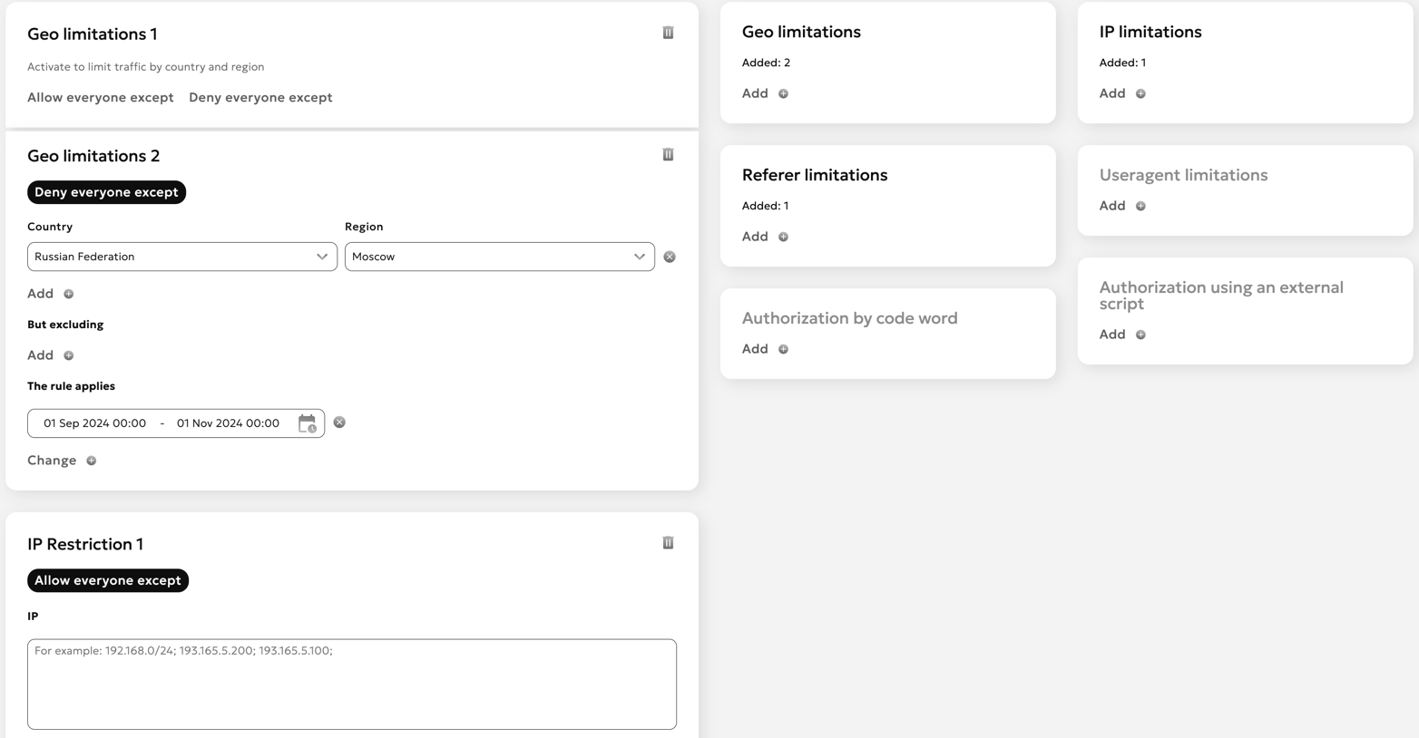 This section is designed for more fine-tuned configuration of the CDN network. Individual rules for any section/path allow you to manage headers, caching, CORS, authorization, and other parameters.