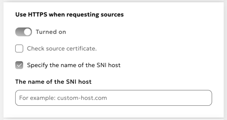 The additional option to specify an SNI host (Server Name Indication) allows you to manually define the hostname sent during the TLS handshake with the origin server. This functionality is particularly useful in the following cases: