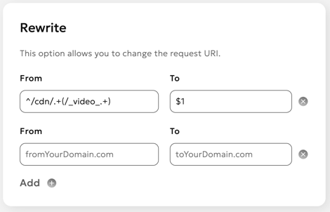Rewrite on CDN for a specific path (rule) is configured similarly to the option for the entire resource.