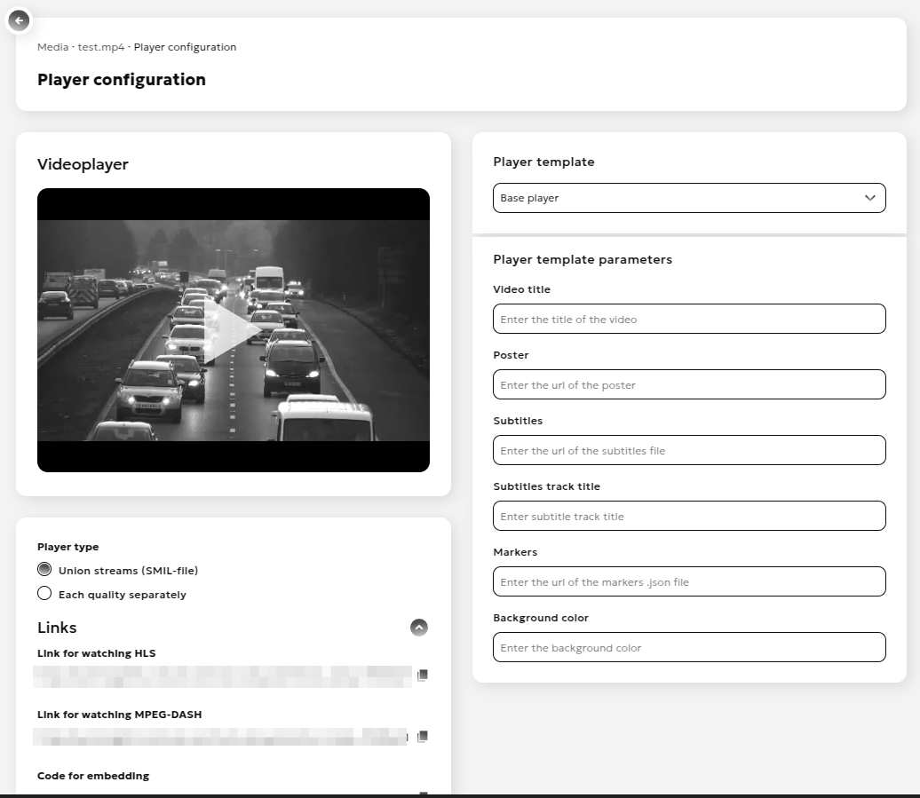 - Links for viewing via streaming protocols (HLS, MPEG-DASH)